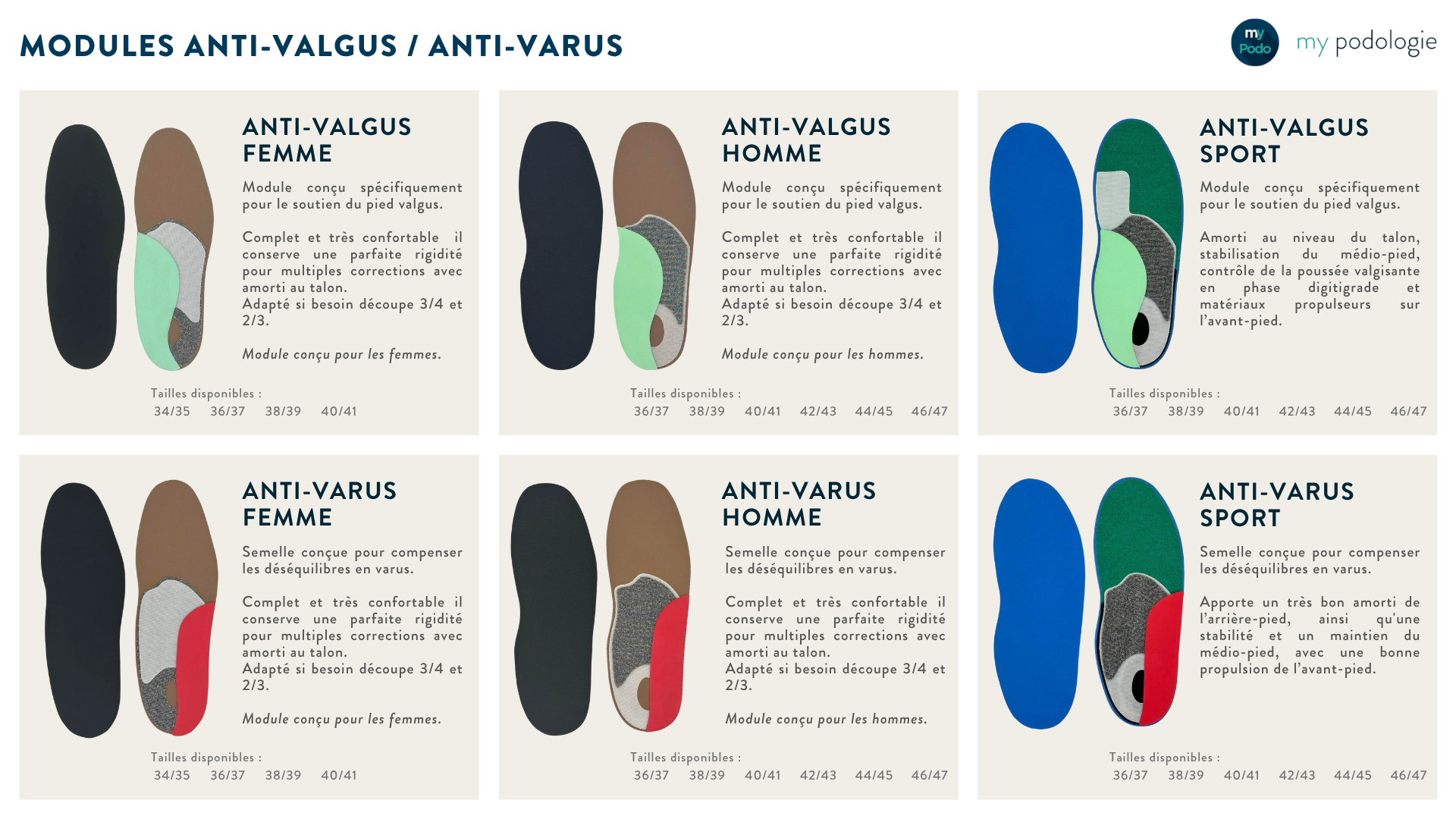 Semelles thermoformées Anti-Valgus et Anti-Varus