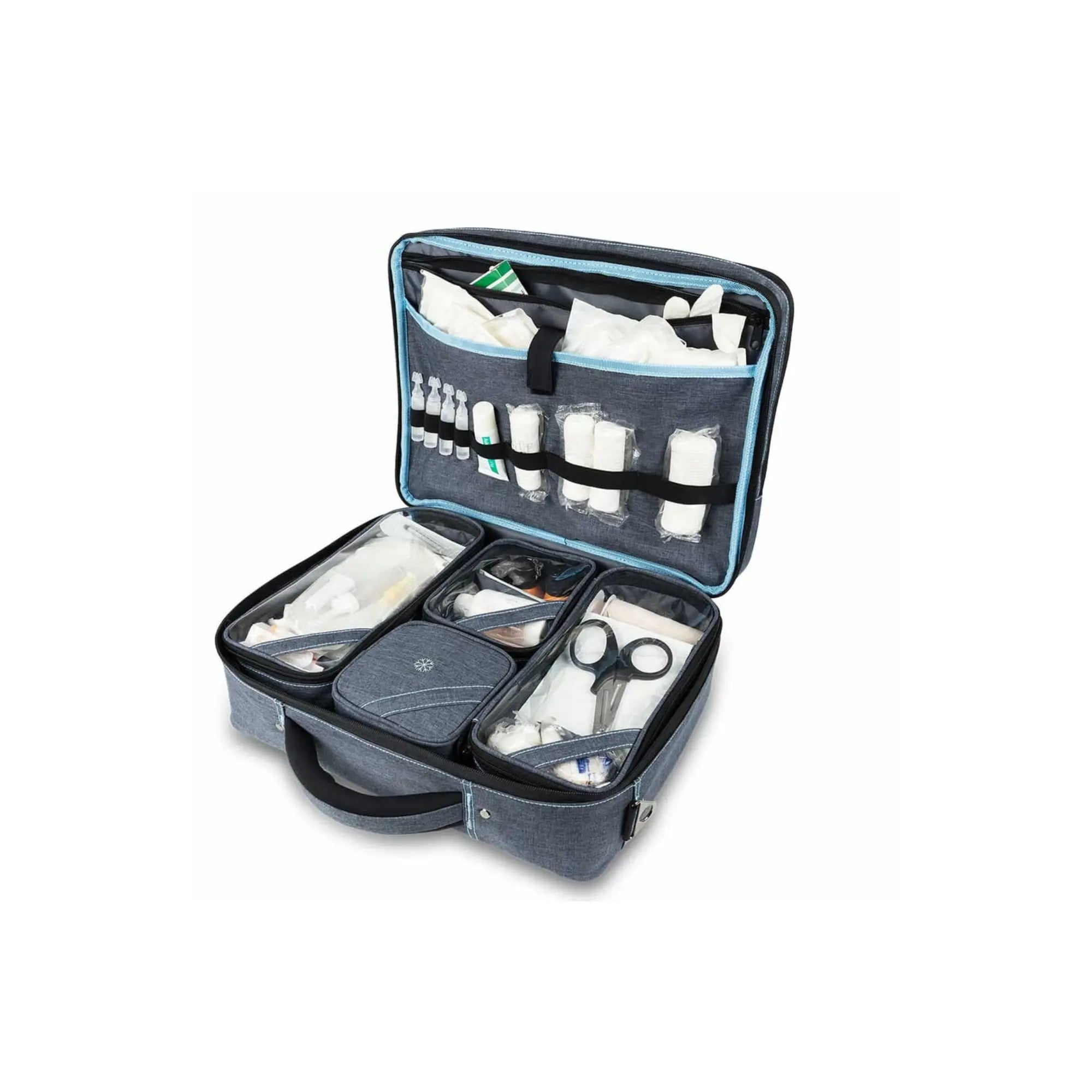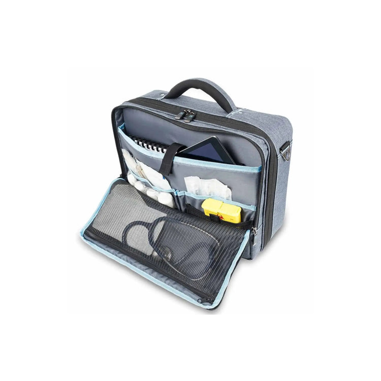 • Parte central equipada con 3 compartimentos extraíbles con ventana transparente para instrumentos y equipos