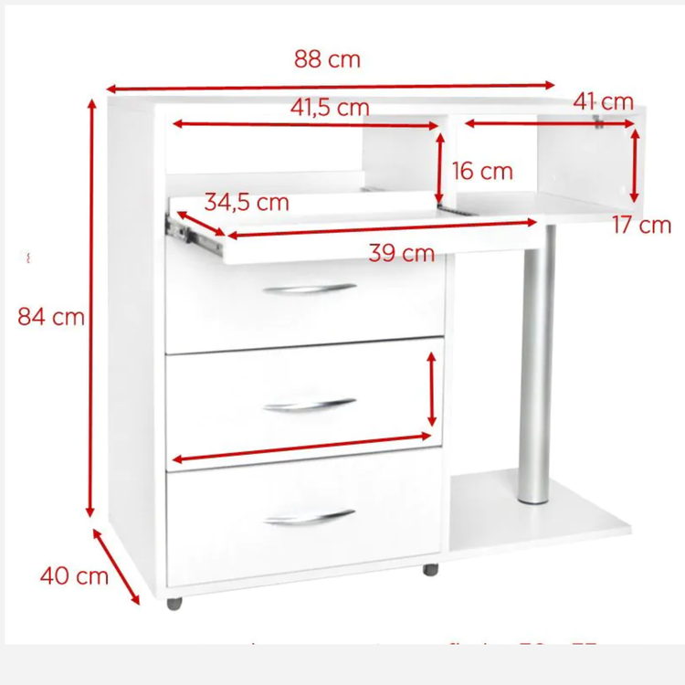 Meuble de podologie Y-300 blanc, robuste et mobile, avec tiroir pour stérilisateur UV-C, étagère ...  En savoir plus