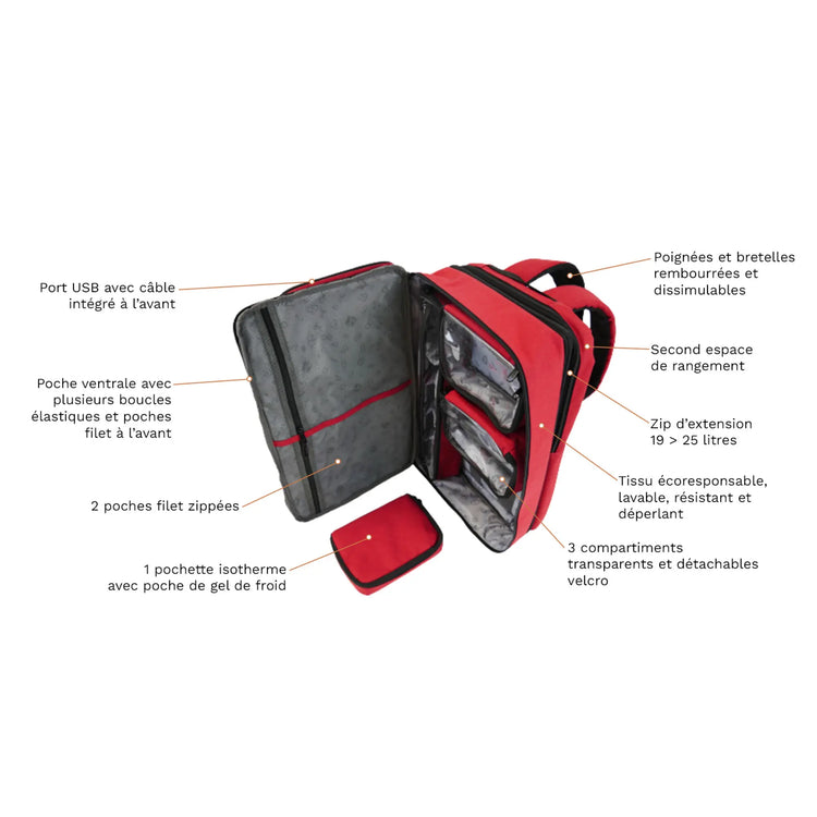 Sac à dos convertible médical MADRAGUE - Rouge / Noir